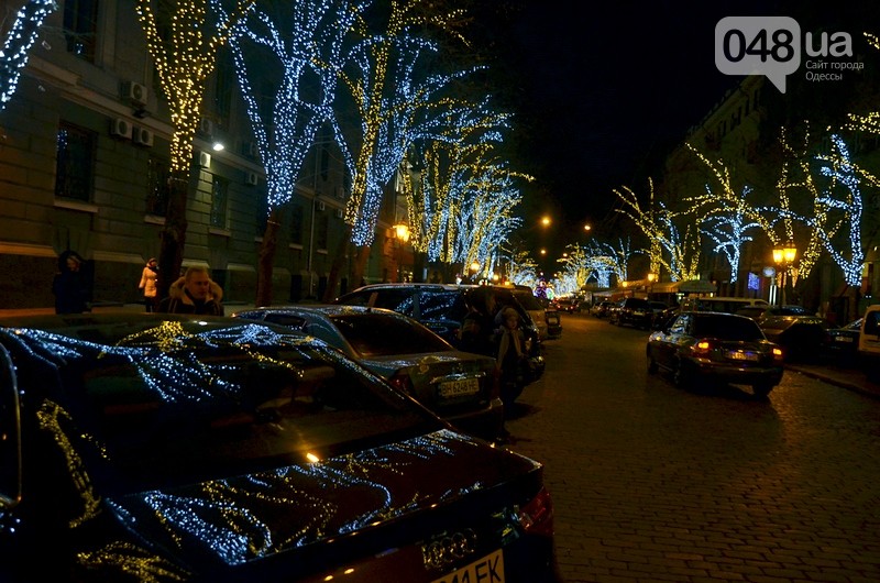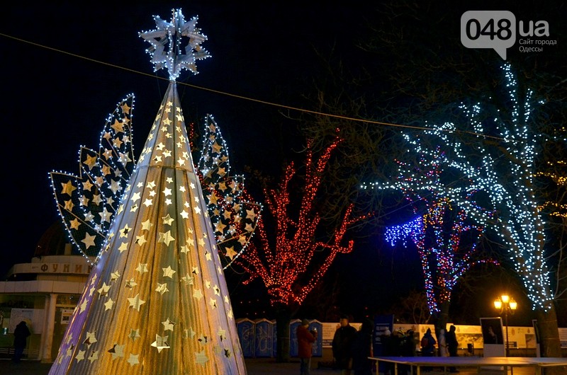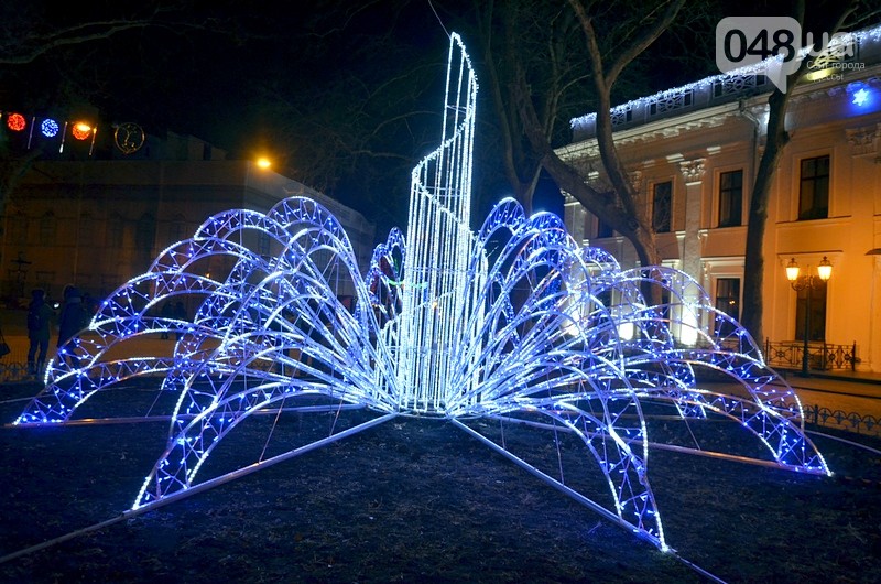 Одесситы радуются красивой достопримечательности. Они с удовольствием прогуливаются вокруг и фотографируются на фоне света.