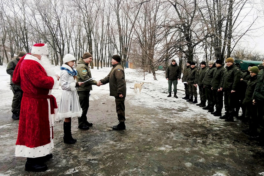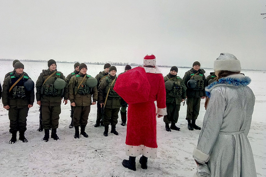 На блок-постах гвардійці з посмішками та оплесками зустрічали Діда Мороза і його онучку Снігурку, але ж для отримання подарунків військовим довелося згадати вірші та Новорічні пісні, адже справжній Дід Мороз просто так дарунків не роздає. З Морозового мішка гвардійці отримали святкові продуктові набори для Новорічного столу.