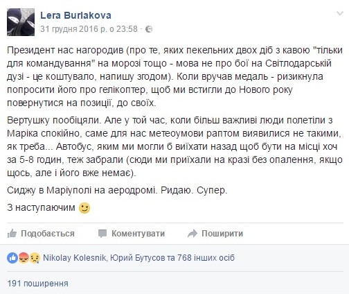 Міністр оборони України генерал армії України Степан Полторак доручив Військовій службі правопорядку у Збройних Силах України провести службове розслідування за фактом неналежного перевезення та подальшого розташування на Маріупольському летовищі військовослужбовців Збройних Сил України — учасників урочистостей у м. Маріуполі Донецької області 31 грудня 2016 року.