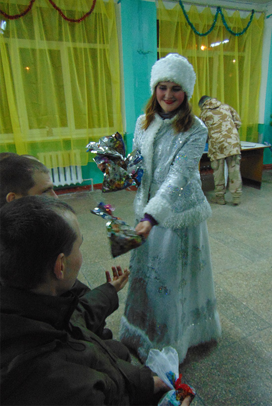 До гвардійців в новорічний вечір зі святковими привітаннями завітали Дід Мороз і Снігуронька.