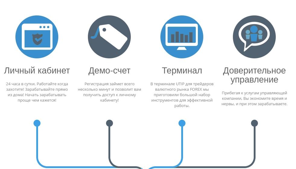 1. Компания разработала уникальный терминал отзывы Tradebifo UTIP, при помощи которого можно проводить анализ рынка и совершать торговые операции с целью получения дохода на разнице курсов валют. Платформа UTIP имеет два модуля - для торговли на рынке Forex и бинарными опционами. И с этим справится даже новичок, поскольку в терминале есть довольно широкий набор инструментов для успешной работы.