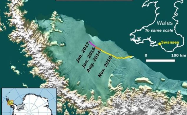 От последней оставшейся части шельфового ледника Ларсен С в течение нескольких недель или месяцев отколется глыба льда площадью около пяти тысяч кв км (это как две трети Черновицкой области).