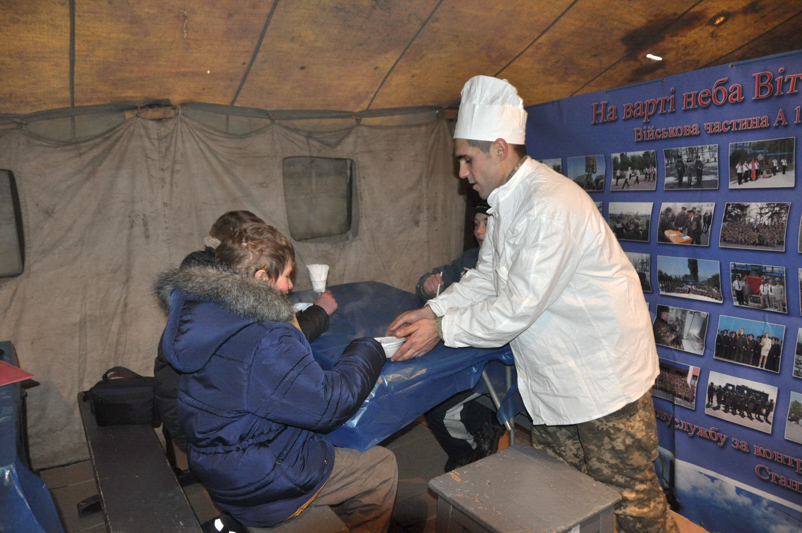 А у центрі міста Васильків на Київщині, у зв’язку з погіршенням погодних умов та значним зниженням температури повітря, військовослужбовці місцевого гарнізону у співпраці з міською владою та відповідними силовими структурами розгорнули і забезпечують роботу тимчасового пункту обігріву з цілодобовим чергуванням та харчуванням.