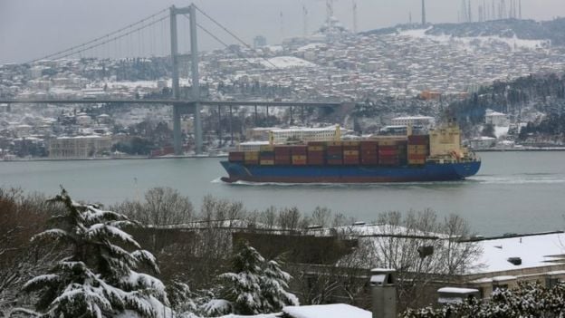 Береговая охрана также приостановила движение судов, входящих и выходящих в пролив Босфор, являющийся одной из самых загруженных морских артерий мира.