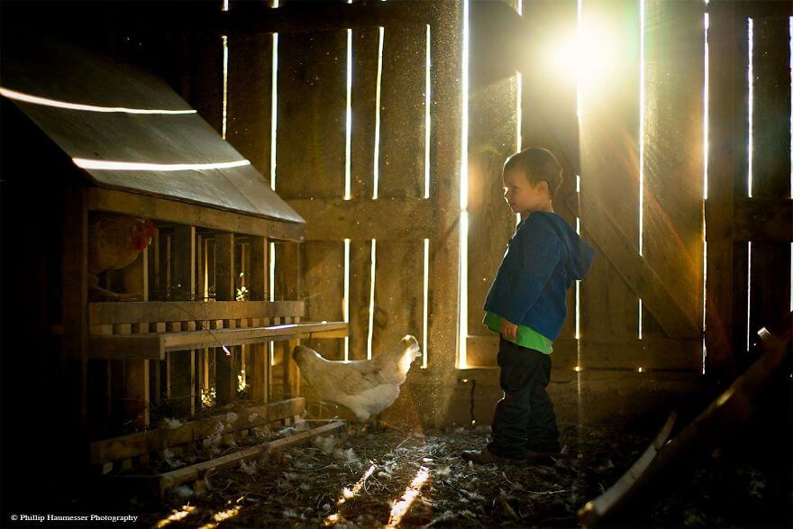 Семья жила недалеко от фермы в штате Массачусетс, поэтому Филиппу не нужно было далеко ходить за красивыми видами. Изначально проблема заключалась в ином – ему было трудно выставить детей в желаемую позу и заставить их простоять в ней хоть немного. Старшему сыну было 2 года, а младшему год. Фотопозирование детям быстро надоедало, а сам процесс превращался в «кошмар».
