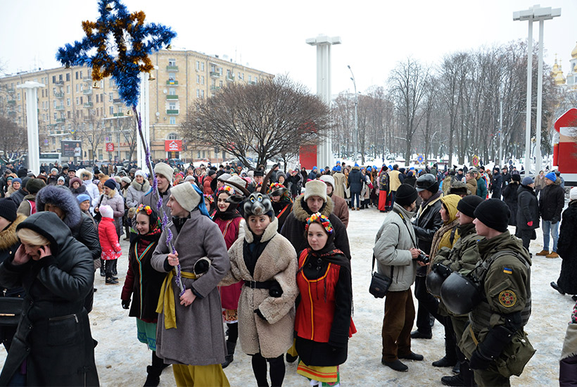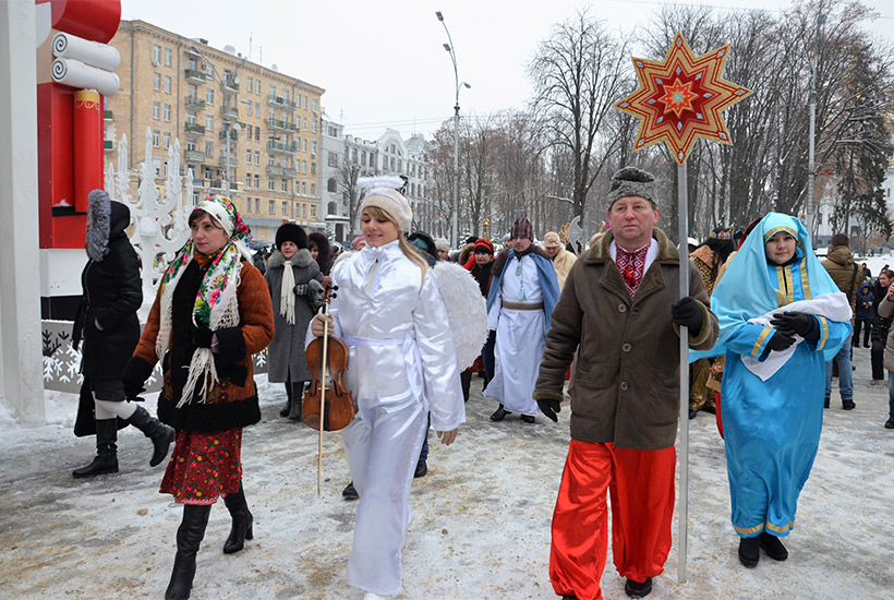 Колонны переодетых участников прошли на встречу друг другу с площади Свободы и площади Конституции и встретились возле Харьковского Национального Академического театра оперы и балета, где и состоялось яркое музыкально-театрализованное выступление вертепов в течение двух дней.