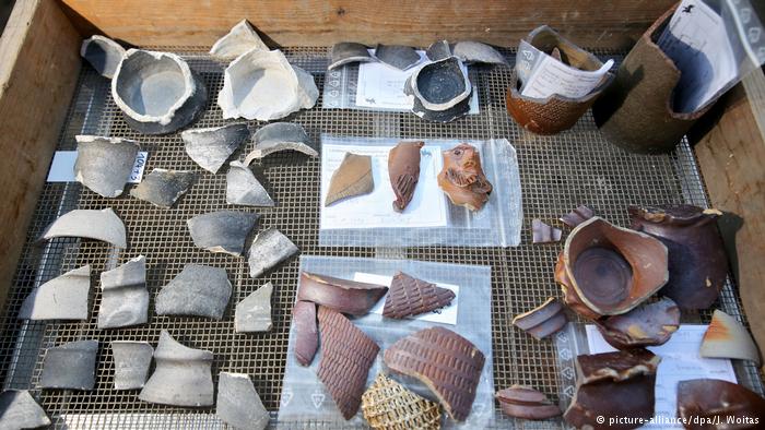Во-первых, практически все находки - это фрагменты глиняных чаш, кружек, стаканов. Во-вторых, разбитая посуда явно была новой. В-третьих, как можно судить по характеру осколков, ее разбили о мощеную мостовую. Так как осколки к тому же перемешаны с многочисленными костями животных, в первую очередь, оленей, диких кабанов и мелкой дичи, руководитель раскопок Хольгер Роде (Holger Rode) уверен: "Без всякого сомнения, мы имеем дело со следами пиршеств, участники которых, осушив стаканы, тут же выбрасывали их".
