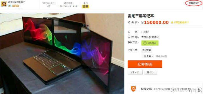 Ноутбук Razer Project Valerie, который был украден на выставке CES 2017 в Лас-Вегасе, выставлен на продажу на китайской площадке Taobao. Продавец хочет за устройство 150 тысяч юаней (около 22 тысяч долларов), пишет Tech Times.