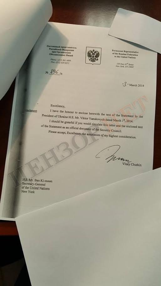 Именно этот документ на заседании СБ ООН 3 марта 2014 года продемонстрировал представитель России Виталий Чуркин.