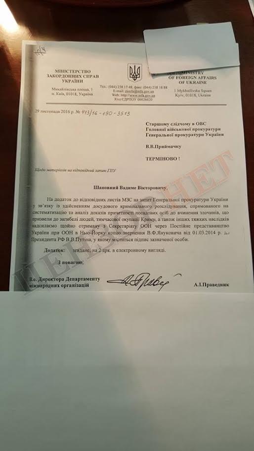 И письмо Януковича, и письмо Чуркина находятся в материалах дела в отношении Виктора Януковича о госизмене с ноября 2016-го, - сообщил Цензор.НЕТ источник в правоохранительных органах.