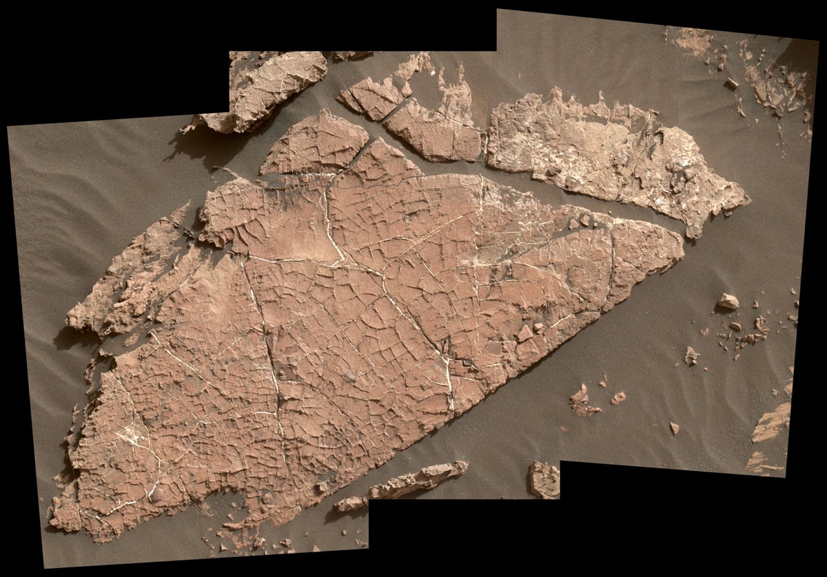 Изучая близлежащие склоны горы Шарп, ученые обратили внимание на необычный "пупырчатый" камень, заставивший их подъехать к нему поближе и изучить его при помощи спектрометров и других бортовых инструментов Curiosity. Любопытство не подвело ученых – им удалось найти окаменевший растрескавшийся слой глины, трещины в котором были заполнены песком и другими породами, встречающимися на дне озер и рек.
