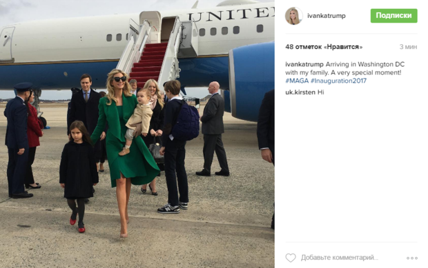 С Трампом прилетели его жена Мелания, дочь Иванка и сыновья Дональд-младший и Эрик.