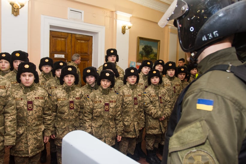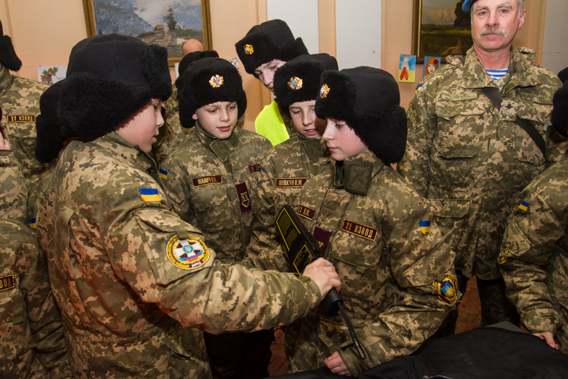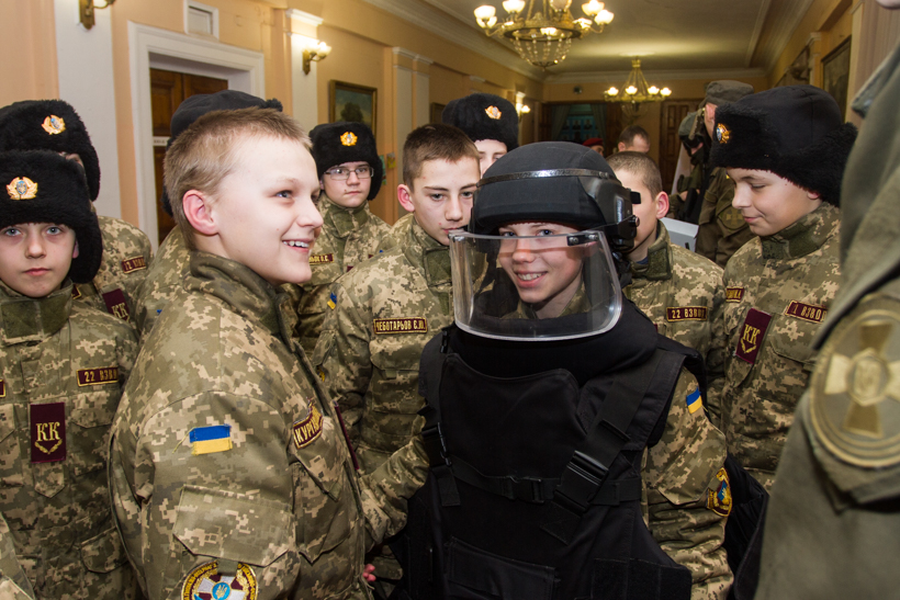 Підполковник Вадим Євсеєв показав спеціальне обладнання та засоби, які використовуються підрозділами Нацгвардії у повсякденній діяльності та при виконанні службово-бойових завдань. Особливу увагу кадетів прикував спеціальний костюм для розмінування, вони мали змогу його приміряти та спробувати себе в ролі спеціалістів-вибухотехніків.