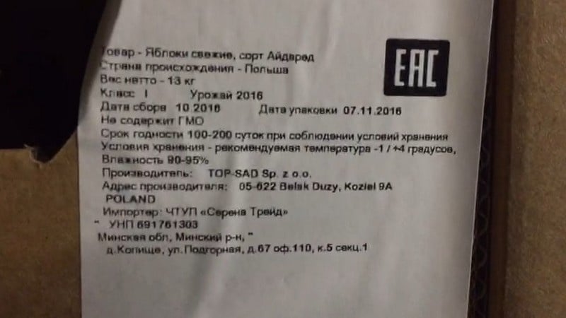 Отмечается, что при досмотре груза были выявлены маркировки польских производителей.