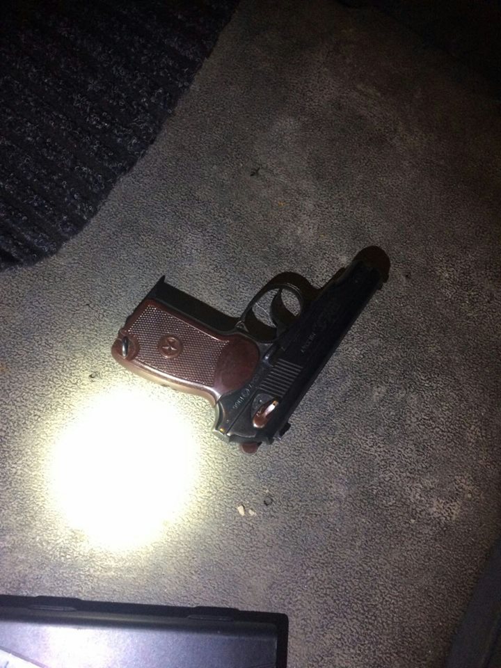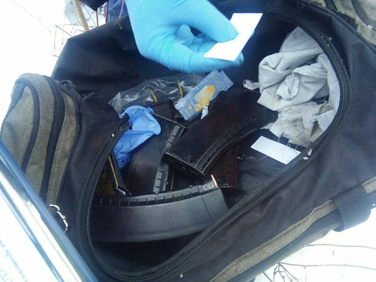 Однак, втікачів наздогнали, сумку знайшли: 2 пістолета Форт, пістолет Макарова, автомат Калашникова та боєприпаси до них.