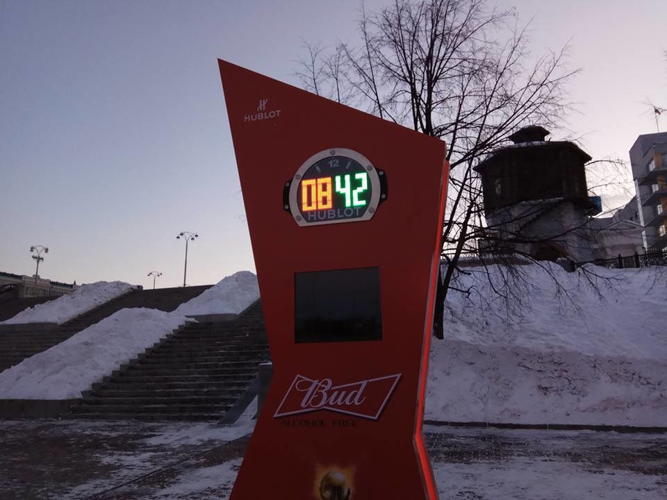 «Часы обратного отсчета, установленные в Екатеринбурге, работают в штатном режиме. Что касается вчерашней задержки запуска, то она была вызвана техническими помехами, которые также наблюдались в работе другого оборудования в период нахождения первых лиц на площадке.