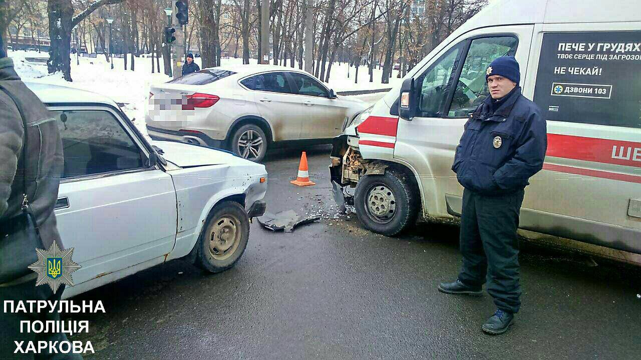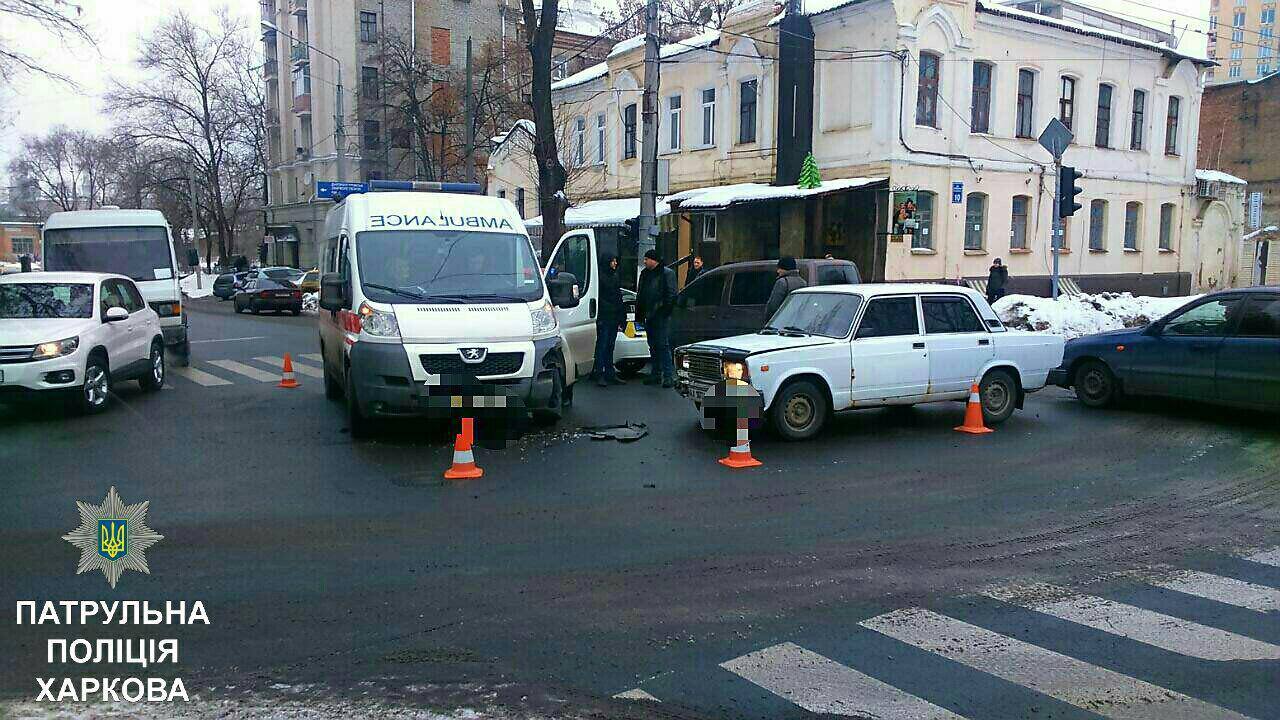 За попередніми даними, сьогодні , близько дванадцятої години, автомобіль ВАЗ 2107 , рухався майданом Небесної сотні у бік вулиці Плеханівської. За словами водія Вазу, він проїхав перехрестя з вулицею Шота Руставелі на дозволяючий сигнал світлофора. В цей час на червоне світло світлофору виїхала швидка та трапилося ДТП.