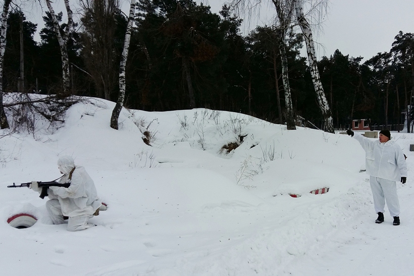 На этот раз гвардейцы отработали действия взвода в разведке, наскоке и в налете. Как и в реальной боевой обстановке личный состав курсантов выполнял упражнения в маскировочных костюмах, которые позволяют скрыто выполнять задачи в течение зимнего периода.