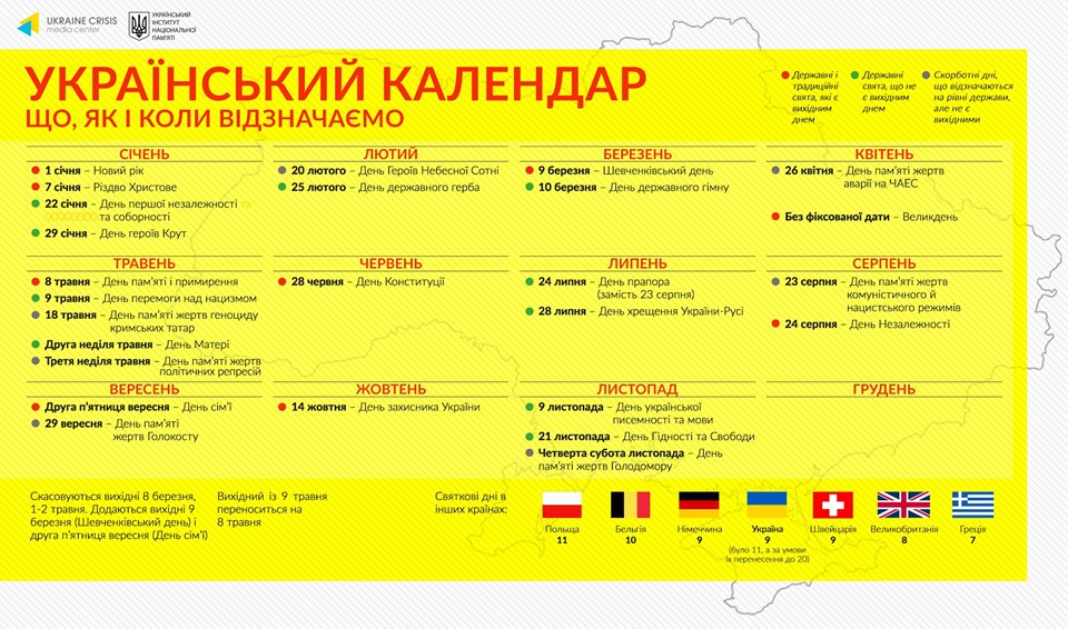 Директор УИНП Владимир Вятрович опубликовал инфографику обновленного календаря праздничных и памятных дней, согласно законопроекту.