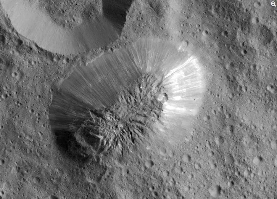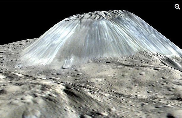 Ахуна Монс, чья высота составляет порядка 4 км, возносится над поверхностью Цереры как огромный палец. На сегодняшний день этот ледяной вулкан является самым большим на карликовой планете. Это единственный ледяной вулкан, и это странно: вулканы очень редко возникают по-одному. Долгое время такая изоляция была для ученых загадкой, но теперь они уверены, что знают ответ: все дело в том, что остальные криовулканы были уничтожены.