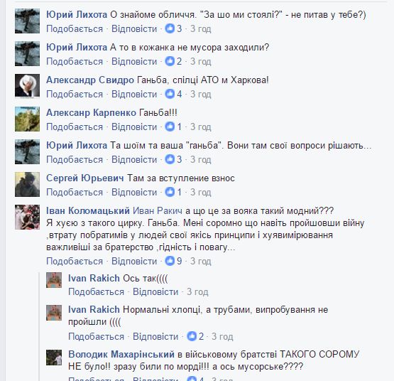 Под постом харьковчане возмущаются действиями так называемых участникв "Союза ветеранов АТО":