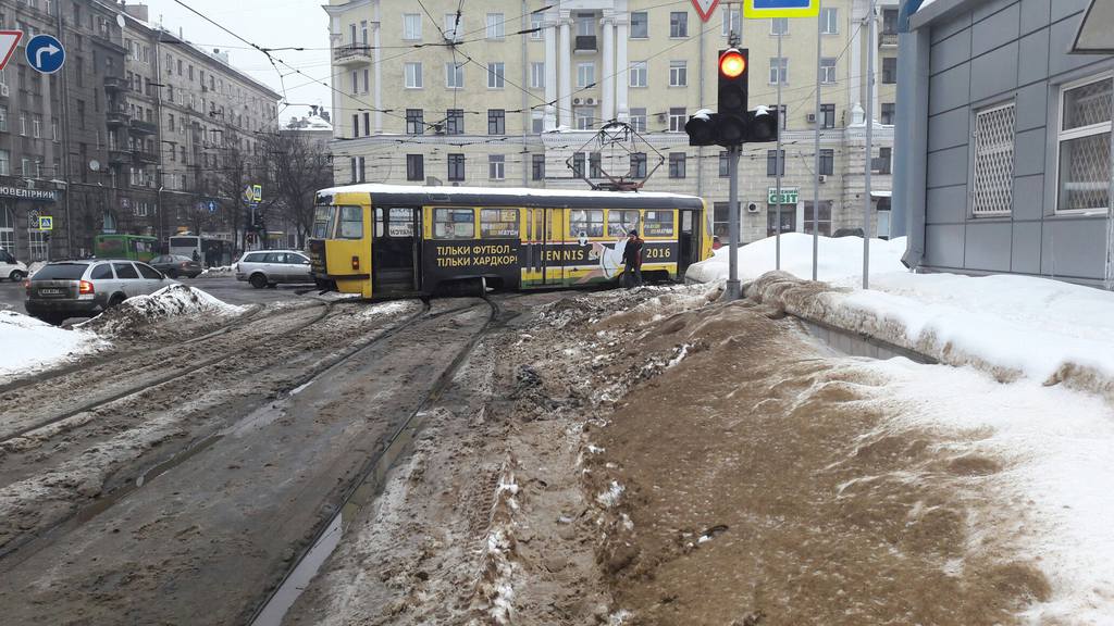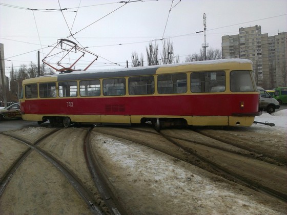 Сегодня же, как отмечает 057, трамвай №27 сошел с рельсов и перегородил пути.