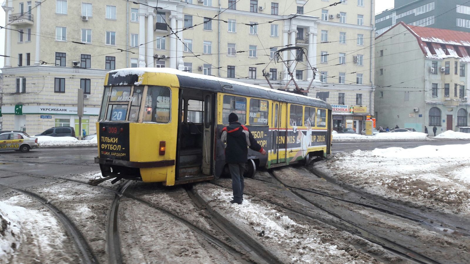 Напомним, вагон №309 только вчера біл участником еще одной аварии. Причем на том же самом месте, где и сегодня: