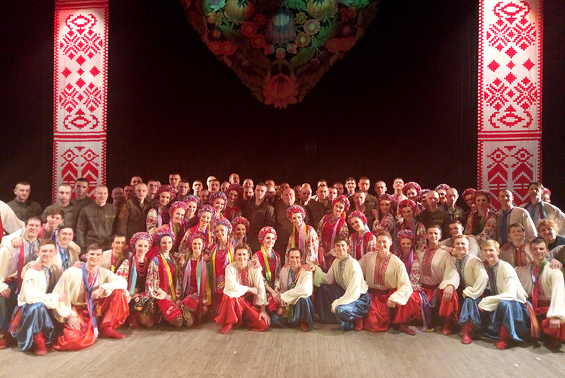 Во дворце культуры «Металлург» бурными овациями встречали гвардейцы воинской части 3057 вместе с жителями города Мариуполь один из самых популярных коллективов страны - Национальный заслуженный академический ансамбль танца Украины имени Павла Вирского.