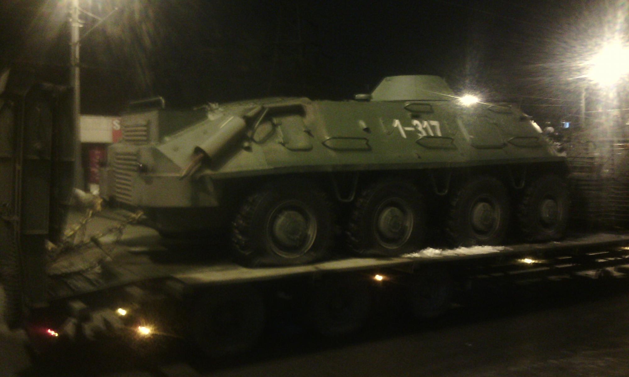11 февраля около 22:15 возле харьковского автовокзала на проспекте Гагарина произошла авария с участием маршрутного такси и тягача с военной техникой. По словам очевидцев, водитель автобуса на повороте не заметил машину военных и допустил столкновение.