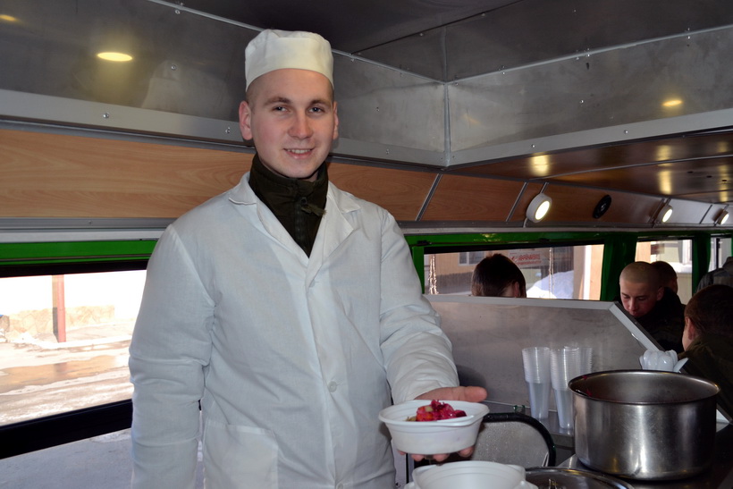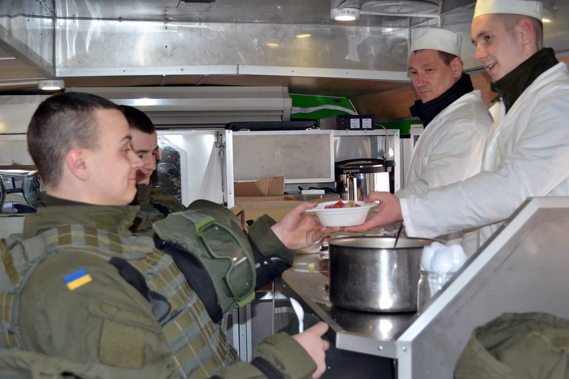 «Сучасний автобус-їдальня надасть можливість організувати прийом їжі особового складу за межами військових частин наближений до умов стаціонарних їдалень. В мобільній їдальні можна розігріти їжу, помити руки, та прийняти їжу за столом. Це відповідає санітарно-гігієнічним вимогам та дає можливість харчуватись військовослужбовцям під час будь-яких погодних умов», - розповів начальник продовольчої служби військової частини 4114 майор Володимир Нарижняк.