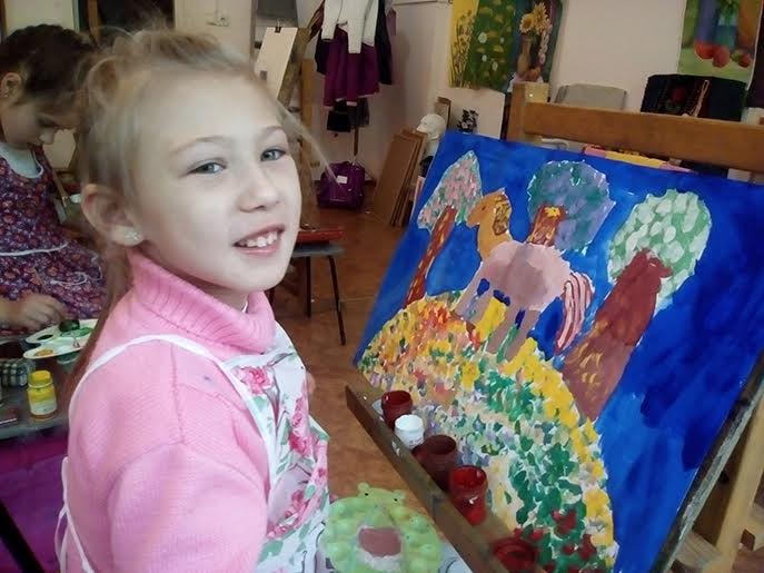А еще в этом году у Вероники состоялась первая художественная выставка! Замечательно, когда успехи ребенка воплощаются в таком важном и волнующем событии, и конечно, Вероничка с родителями были очень счастливы.