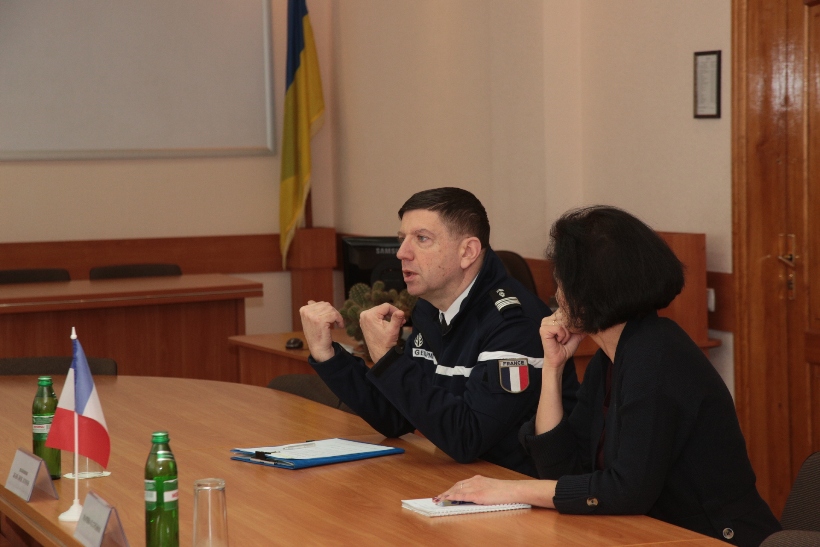 «Цель моего визита в ваше учебное заведения сделать все возможное, чтобы будущие офицеры Нацгвардии смогли взглянуть на мир сквозь призму европейских языков. Ведь, обладая несколькими иностранными языками мы открываем перед офицерами новые пути - международные тренинги и курсы, прохождение обучения в школах жандармерии и подобных учебных заведениях, участие в миротворческих операциях. В жандармерии Франции и украинской Национальной гвардии много общего общих и я уверен мы имеем много направлений для сотрудничества », - отметил полковник Жан-Люк Ломон.