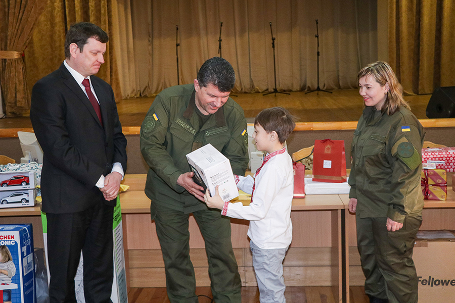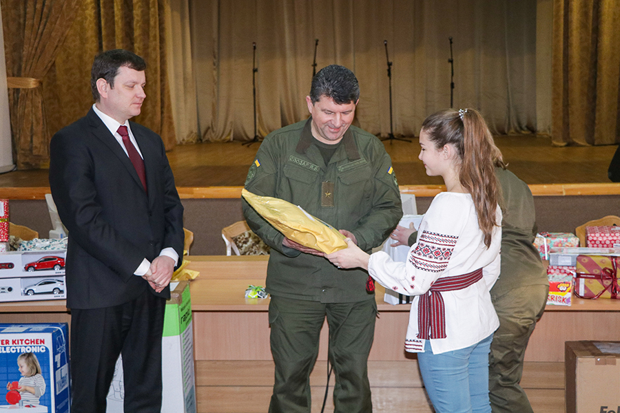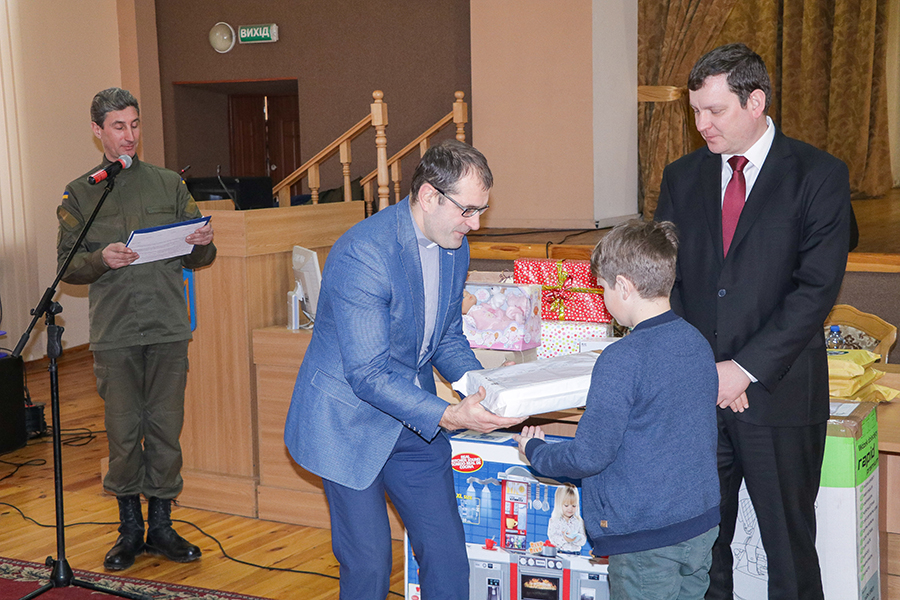 Частина подарунків була вручена в клубі військової частини. Заступник командувача Національної гвардії України по роботі з особовим складом Ярослав Сподар запевнив, що всі подарунки будуть особисто передані своїм власникам та пообіцяв всебічну підтримку родинам загиблих в АТО: «від командування хочу принести слова скорботи і хочу запевнити членів сімей загиблих, що ми щодня памятаємо. Цей біль не тільки ваш, а і наш. І хочемо зробити все, щоб зменшити цей біль. Ви – це наша сімя. Ми завжди відкриті для спілкування. Ми завжді готові прийти на допомогу, як тільки ви скажете, що цю допомогу потребуєте».
