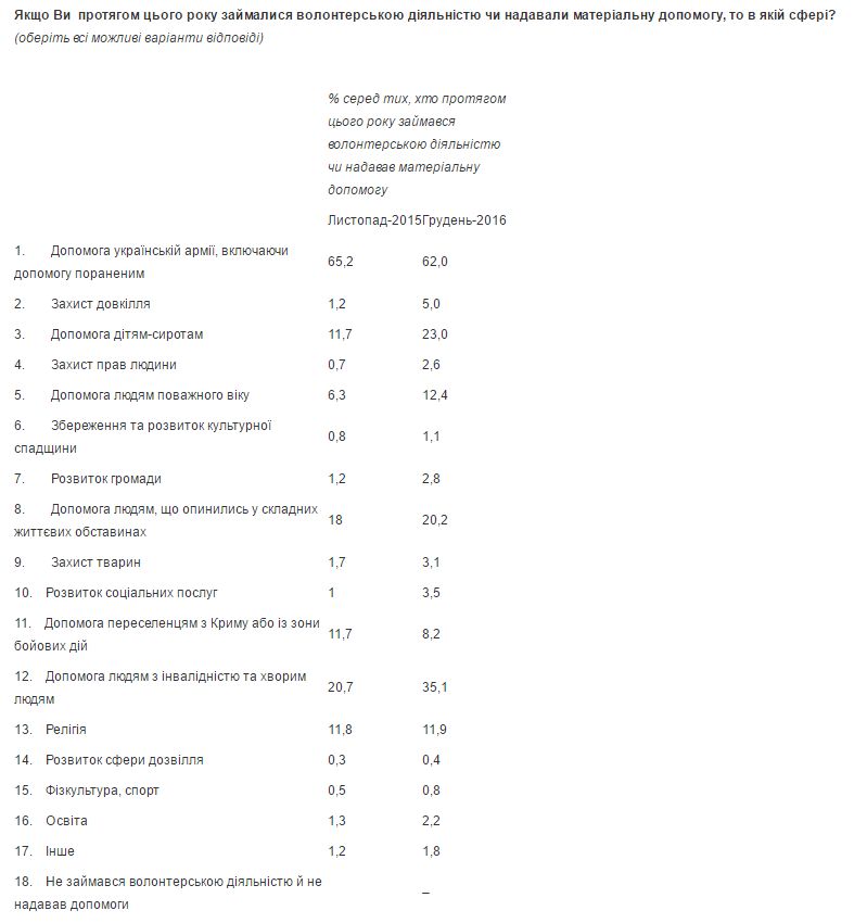 При этом, как отмечают социологи, украинцы сегодня готовы больше помогать детям, старикам и тем, кто борется за права человека.