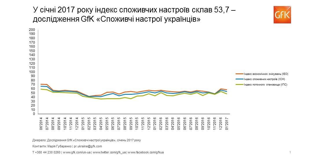 "После сильного роста в декабре индекс потребительских настроений снизился в январе 2017 года. Однако его значение выше, чем в январе прошлого года", - комментируют результаты аналитики GfK Ukraine.