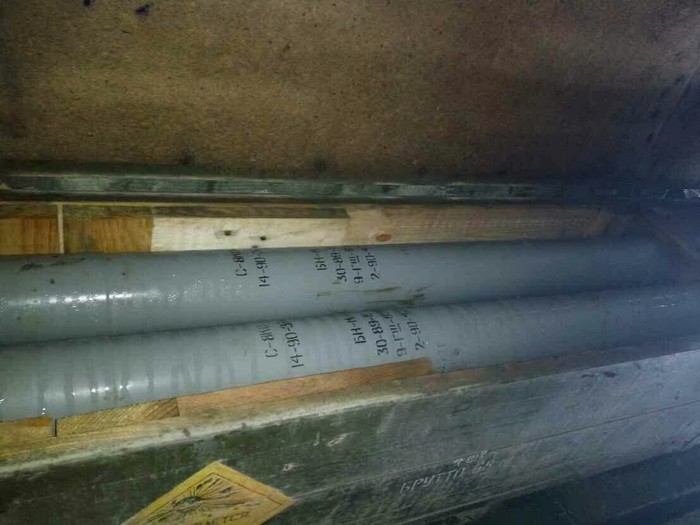 Схованку з некерованими авіаційними ракетами виявила Служба безпеки України у районі Сватового на Луганщині. Оперативники спецслужби виявили 80 необлікованих ракет типу С-8КО в одному з гаражів. Бойова частина ракети містить до одного кілограма вибухової речовини, що за руйнівною здатністю у шість разів перевищує тротил.