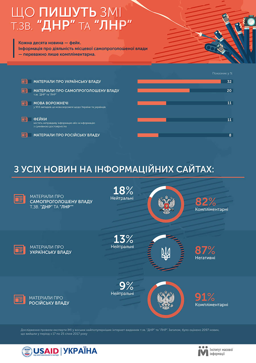 Таковы результаты мониторинга интернет-изданий оккупированных районов Донецкой и Луганской областей Украины, который провел ОО "Институт массовой информации" в январе 2017