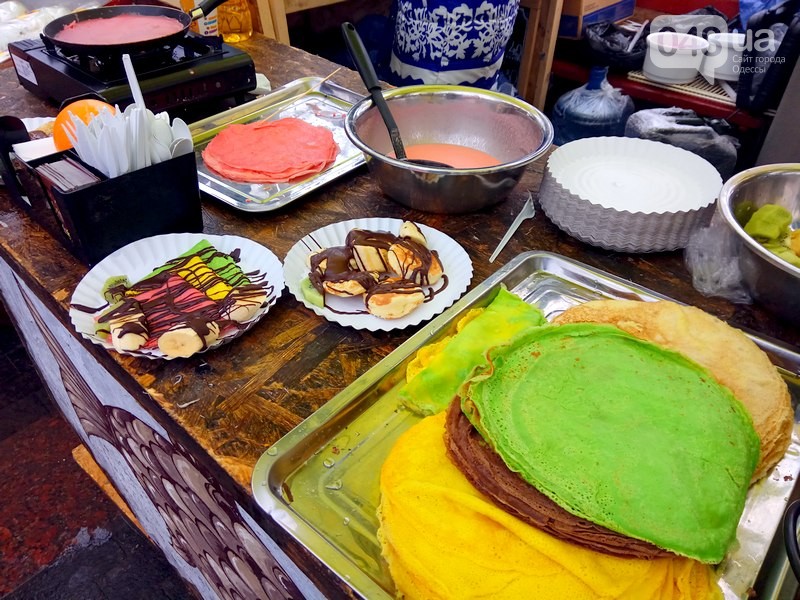 Горожанам предлагали широкий выбор блинов и начинок к ним. Самые креативные повара испекли зеленые и оранжевые налистники.