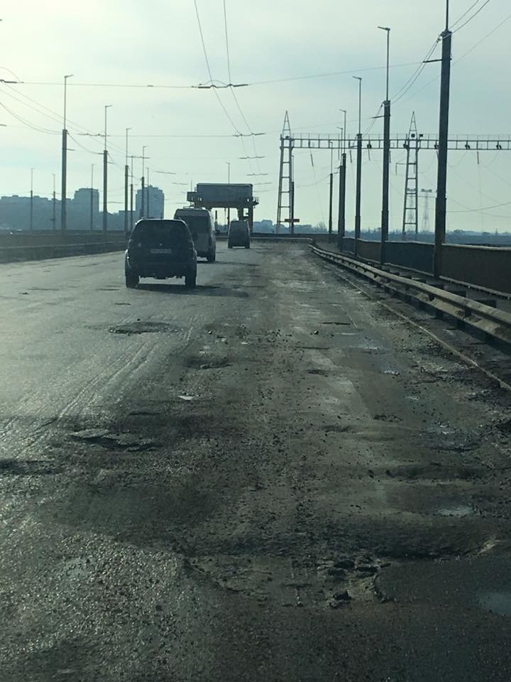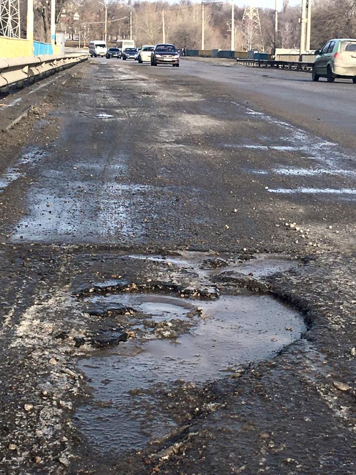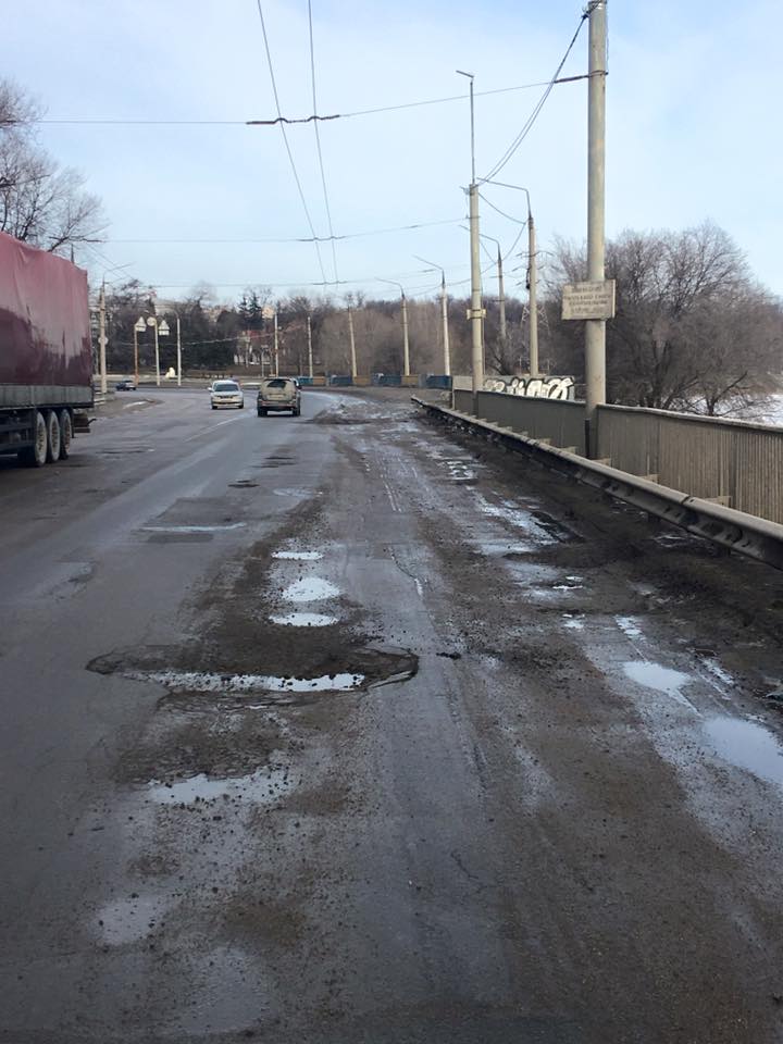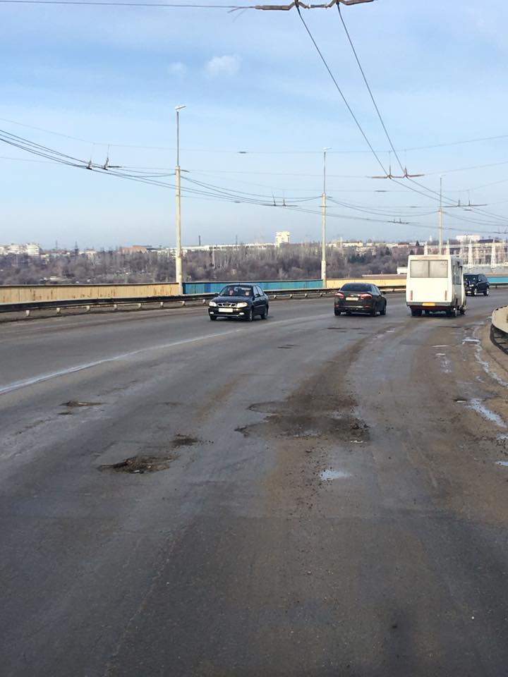 "Проезд по плотине ДнепроГЭСа в последние месяцы превратился в настоящее испытание. Ямы шириной до метра и глубиной 20-30 сантиметров делают проезд по плотине опасным для жизни. С таянием снега ситуация еще сильнее усугубилась. Правые полосы фактически стали непроездными, тем самым пропускная способность плотины, соединяющей два берега, сократилась более чем в два раза", - написал он.