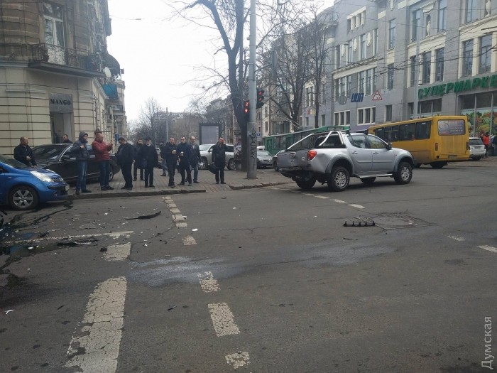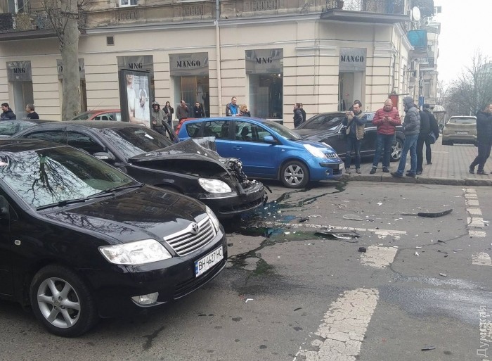 Нетрезвый водитель устроил подряд две аварии в самом центре Одессы. Сначала на углу Дерибасовской и Ришельевской он задел припаркованный Lexus, а на следующем перекрестке с Греческой влетел в Mitsubishi.