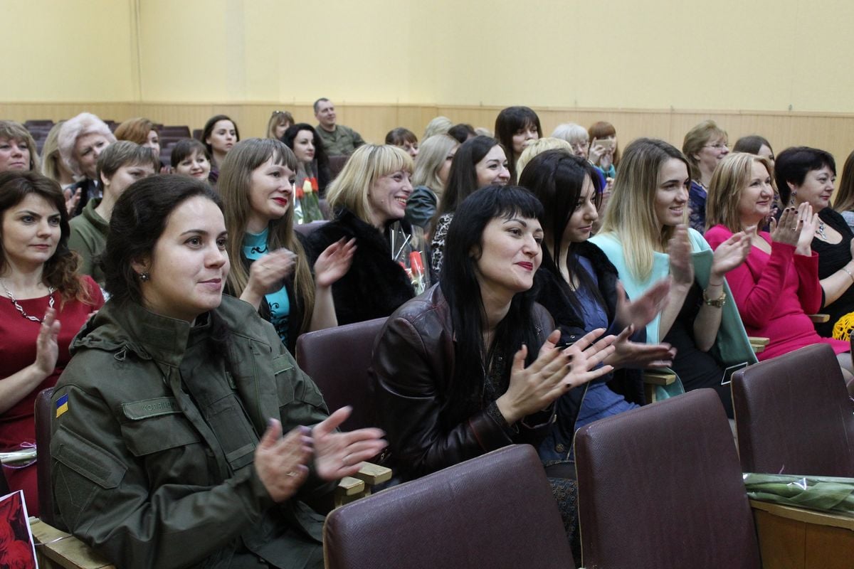 Сьогодні красуні військової частини були надзвичайними – вони змінили форму на  вишукані плаття, високі підбори — концертна зала одразу розцвіла з появою дівчат.