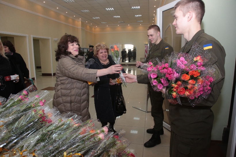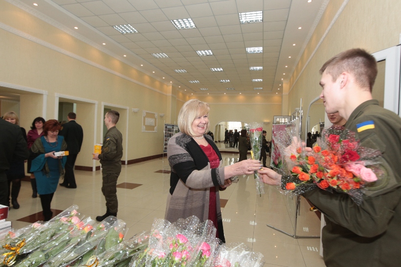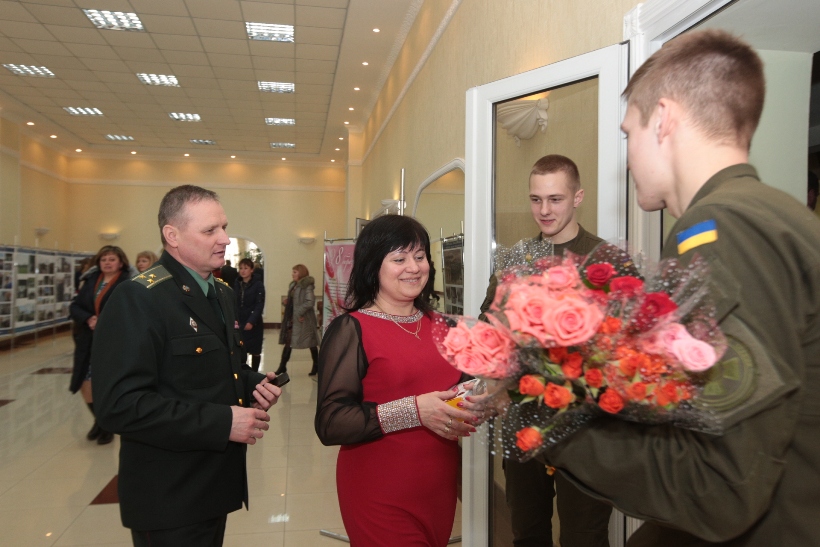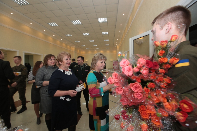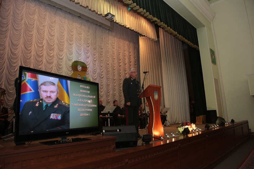 «Шановні друзі, з імям жінки пов’язане усе наше життя. Це і мати, яка дає нам життя, це і наша Батьківщина, це Національна гвардія України, це наш навчальний заклад – Академія, це наші сестри, наші доньки, наші бабусі, і ми, чоловіки, раді й горді вам служити. Служити Батьківщині і нашій родині! В цей святковий день я хотів би привітати усіх жінок з весняним святом, побажати вам бути коханими, кохати та залишатися такими як ви є».