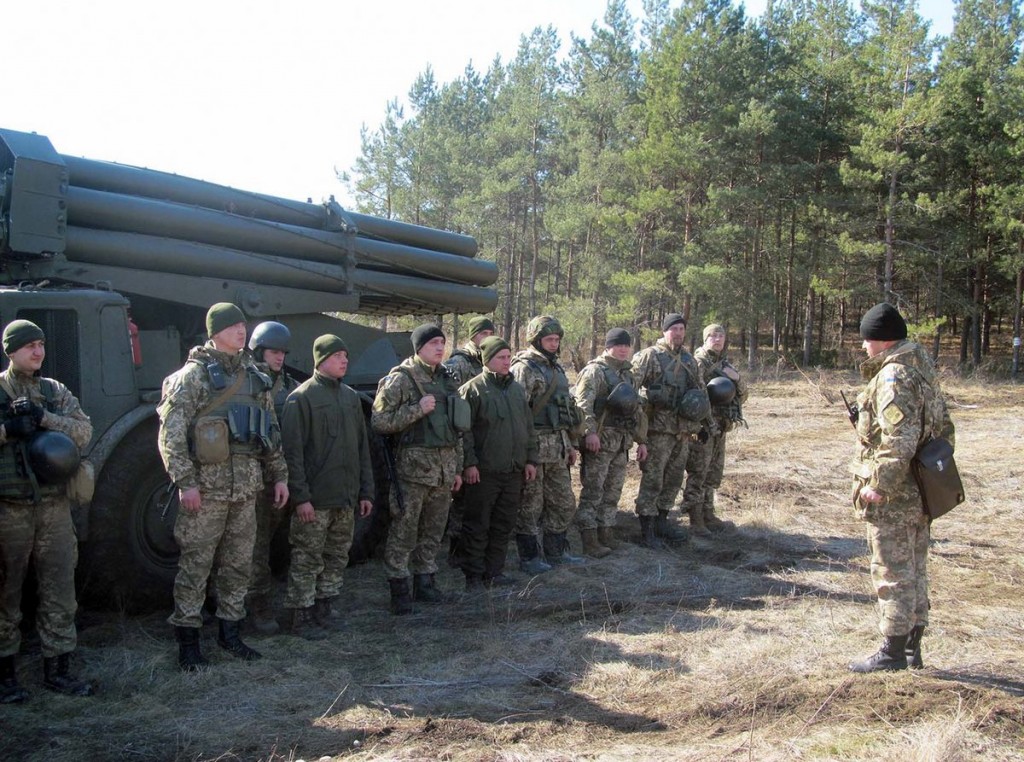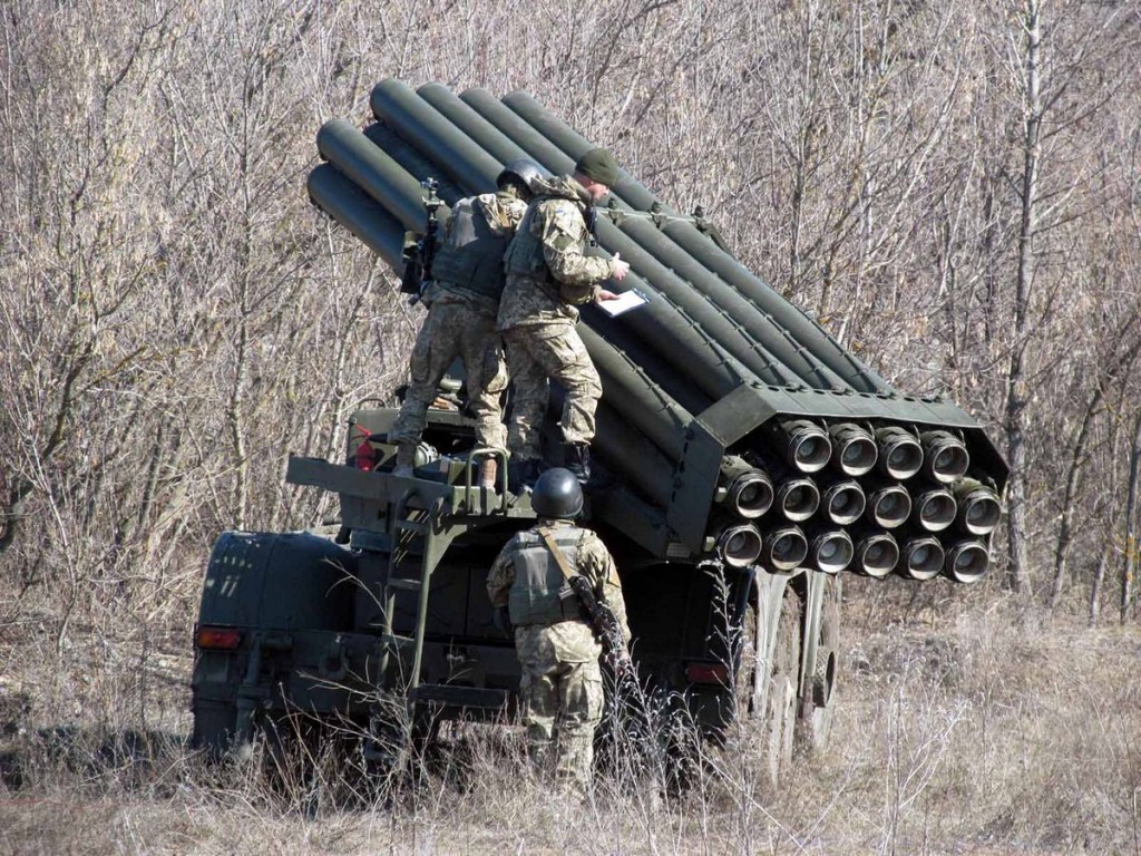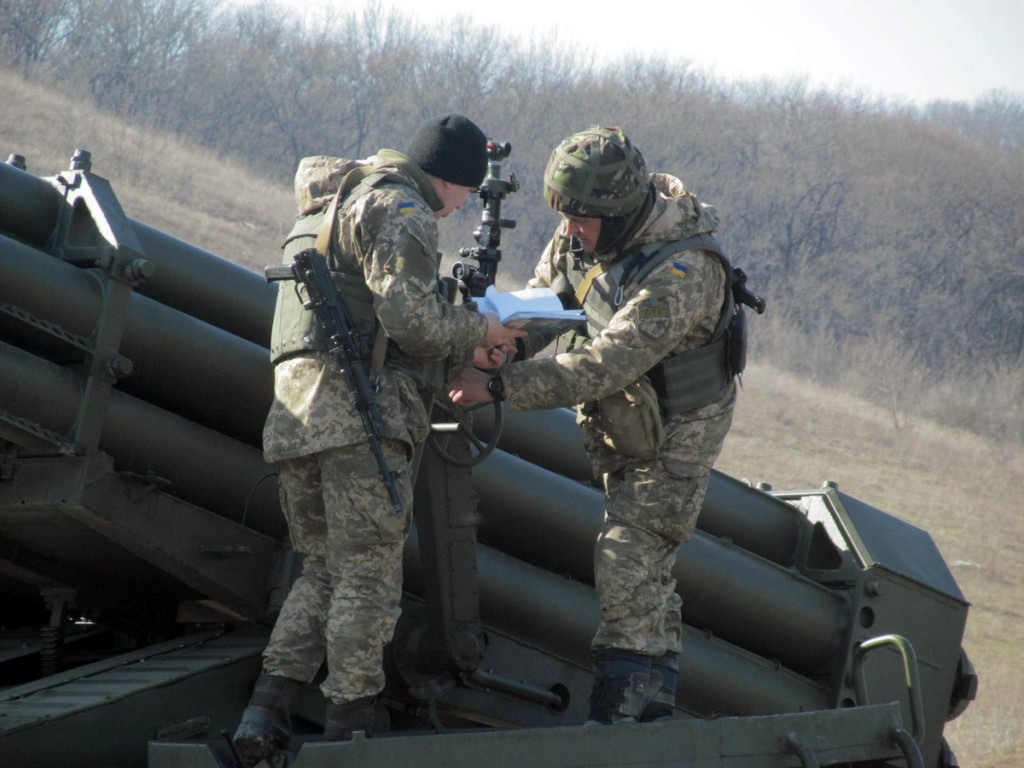 На Луганщині, на визначеній Мінськими угодами відстані від лінії розмежування, в польових таборах військовослужбовці однієї з реактивних артилерійських бригад щодня займаються вдосконаленням свої майстерності. Їх основне озброєння — реактивні системи залпового вогню «Ураган».