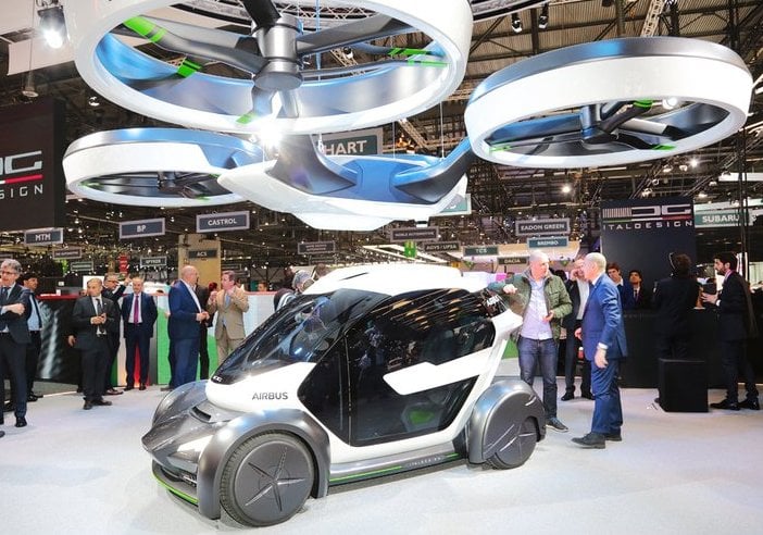 Ателье Italdesign и концерн Airbus презентовали на Женевском автосалоне концепт электрического летающего автомобиля - Pop.Up. Прототип представляет из себя модульную платформу, состоящую из капсулы-салона для двух человек, и двух модулей - для поездок по дорогам и воздушного перемещения. С помощью искусственного интеллекта каждый из модулей самостоятельно соединяется с капсулой в зависимости от дорожной обстановки.