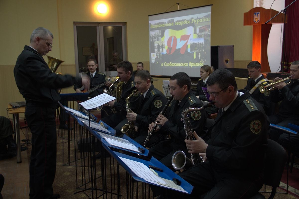 Привітання супроводжувалися музичними номерами військового оркестру частини та академічного Слобожанського ансамблю пісні і танцю.