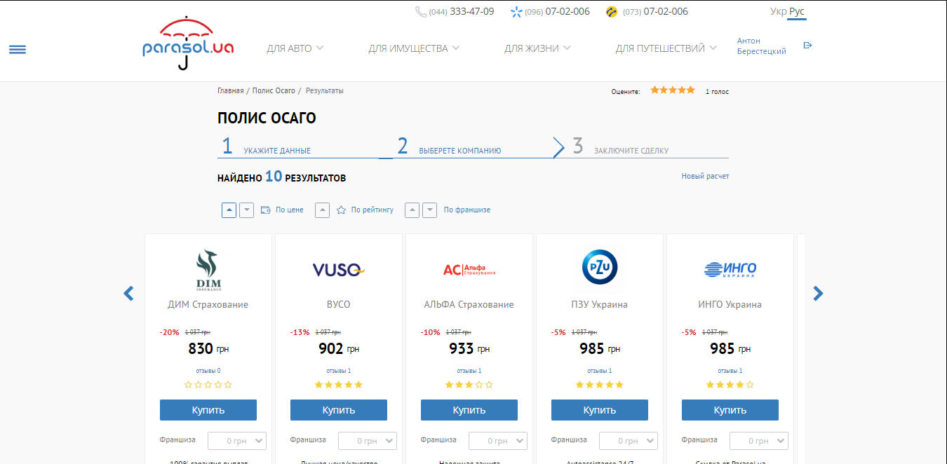 Менеджеры сайта заботливо собрали информацию об услугах 15-ти основных страховых компаний Украины, среди которых такие "киты" как Инго Украина, Княжа, PZU, VUSO, UNIQA, Salamandra и другие.