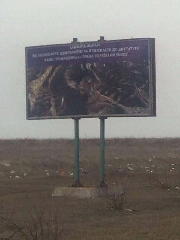 "Волонтерская группа Itchy Trigger Finger Ukrainians совместно с объединением "Бей падлюку" передают привет российским оккупантам с борда прямо на границе с оккупированной территорией, на Чонгаре", - написал блогер Антон Ходза в Facebook.