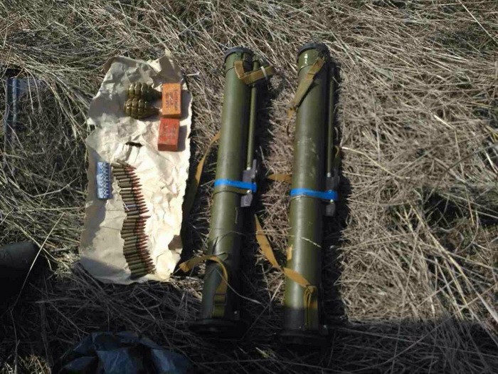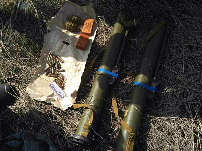 Зі схрону, що був облаштований у зруйнованому будинку в одному із селищ Більмацького району (межує з районом проведення АТО), правоохоронці вилучили дві реактивні протитанкові гранати РПГ-26, дві гранати Ф 1, тротилові шашки та набої калібру 5,45.
