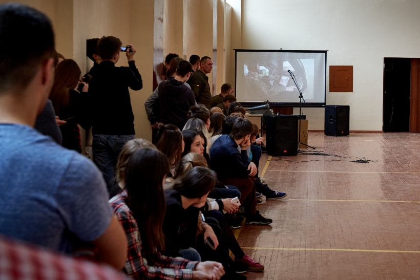 «Мы тренируемся каждый день во время обучения. Это не обязательно рукопашный бой или какое-то боевое искусство, которым большинство из нас занимается. Это могут быть просто силовые тренировки, бег, тренировки выносливости. Чтобы хорошо владеть рукопашным боем, заниматься нужно не только изучением приемов, но и нужно иметь силу их выполнить и довести бой до логического завершения - победы! Мы уже не только привыкли к таким тренировкам, мы уже без них не можем. Кроме того, важна психологическая подготовка. Мы ежегодно выполняем прыжки с парашютами, там сразу видно, кто готов и сильный духом, а кто еще нет », - рассказывает школьникам курсант Владислав Крамаренко.