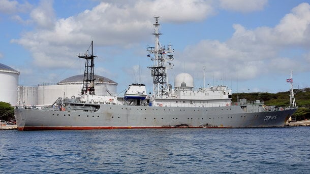 Ранее сообщалось, что американские разведчики заметили российское судно "Виктор Леонов" примерно в 37 км к юго-востоку от американской военной базы Кингс-Бэй в штате Джорджия. При этом оно оставалось в международных водах.